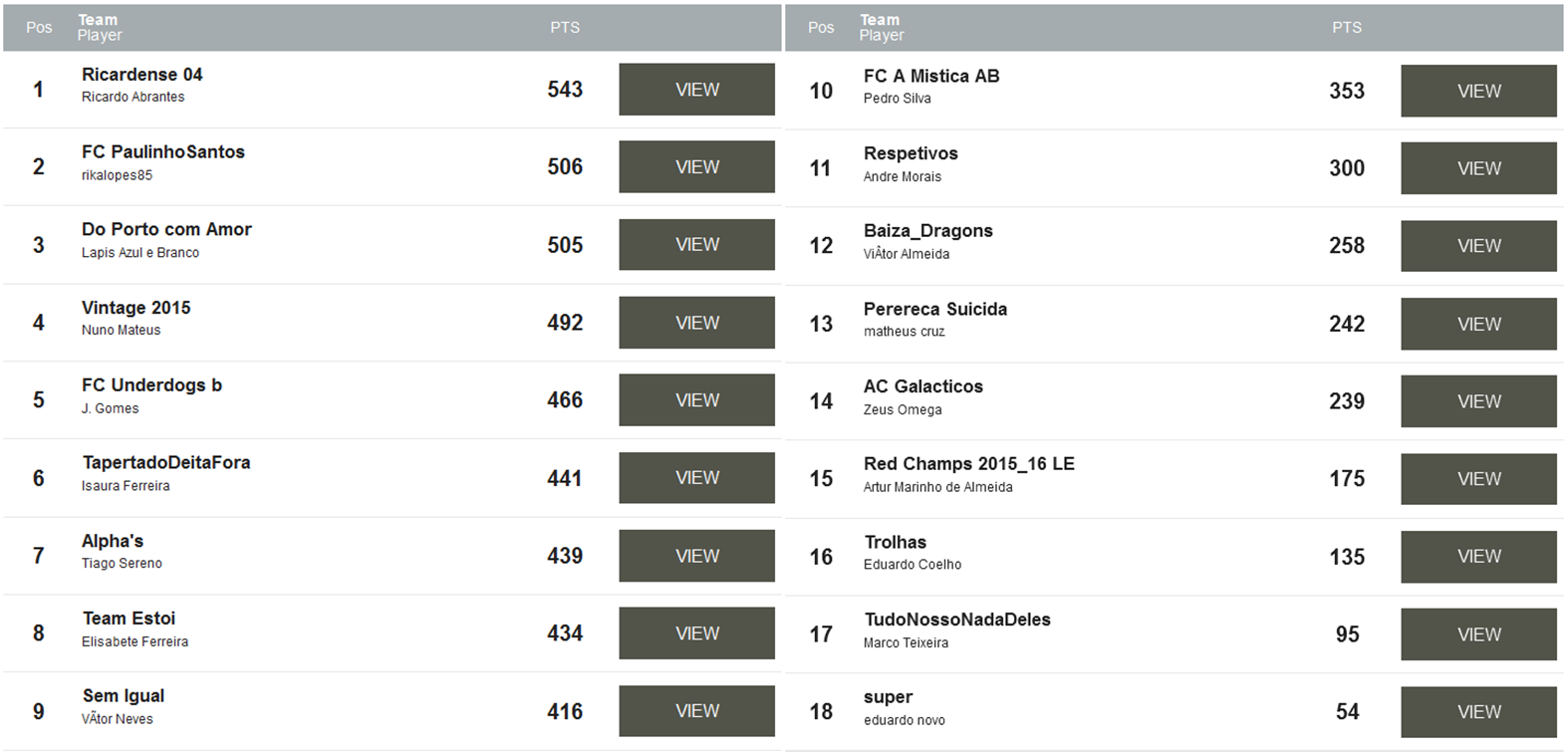 Na competição do nosso descontentamento, bem (só) está o pedromiguelpacheco (FK Qabala de Fajões), que leva quase 100 pontos de avanço sobre o segundo classificado, o portistaeusou (F.C.Porto Estoi) e cerca de 150 (!) do terceiro, o VMFN1988 (The Dark Passenger 2), que por sinal venceu a última ronda e por larga margem, totalizando 59 pontos. Trata-se portanto de uma vitória anunciada e por isso, desde já endereço os meus parabéns ao Pedro. Se por milagre forem indevidos, agradeço a sua devolução :-).